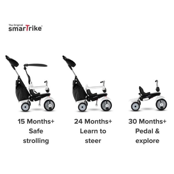 סמארט טרייק smarTrike הוא תלת-האופן היחיד בדחיפה עם היגוי מגע ללא מאמץ; פשוט געו בידית ההורה והתלת-אופן ינוע באופן אינטואיטיבי בכיוון הרצוי – לא עוד דחיפה ולחימה חזקה עם תלת-אופן!