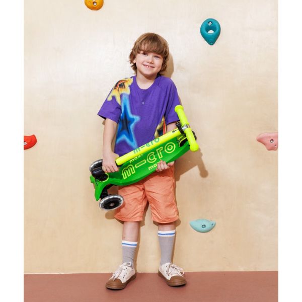 • מיקרו מקסי דלוקס מתקפל לד ירוק נאון צעקני קורקינט 3 גלגלים MICRO MAXI DELUXE FOLDABLE LED